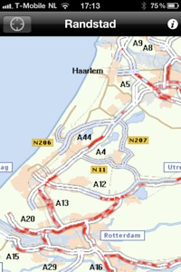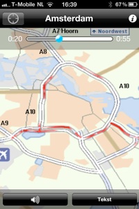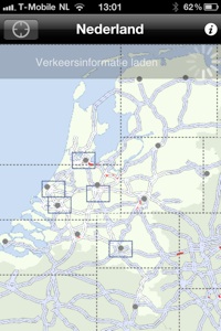 Je kunt de actuele verkeersinformatie beluisteren of de kaart bekijken om te zien of er files zijn. De kaart is verdeeld in secties, door op een sectie te dubbelklikken vergroot je een regio uit. Rode lijnen op de wegen tonen waar de files staan.